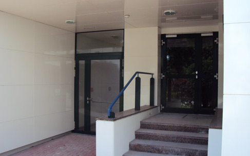 Die bestehenden Ausstiege der Aufzüge und der Schwesternstützpunkt wurden mit Rauchschürzen ausgestattet.