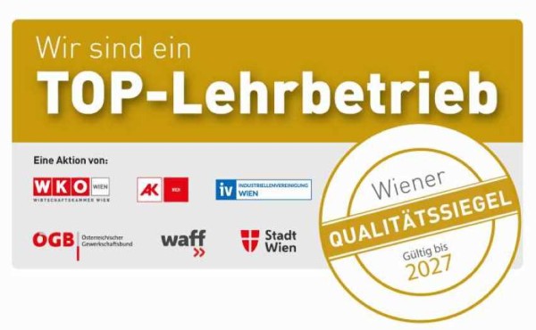 2023 haben wir erneut das Wiener Qualitätssiegel "Top-Lehrbetrieb 2023-2027" erhalten. Damit haben wir die Bestätigung von "höchster Stelle", dass wir alles richtig machen in der Lehrlingsausbildung. Wenn wir so weitermachen (oder noch besser werden), ist unsere Lehrlingsausbildung auf einem Standard, den es nicht oft in Wien oder sogar in Österreich gibt. Lehrlingsausbildung ist eine Investition, die sich lohnt. Das ist unsere Philosophie. Kompetente und verlässliche Arbeitskräfte, die "von der Pike auf" diesen Beruf erlernen, sind der Lohn und der Verdienst aller, die in der Lehrlingsausbildung mitwirken. Wir sind sehr dankbar, dass unsere Mitarbeiter diese Philosophie mittragen und unser Unternehmen zu einem Top-Lehrbetrieb gemacht haben!